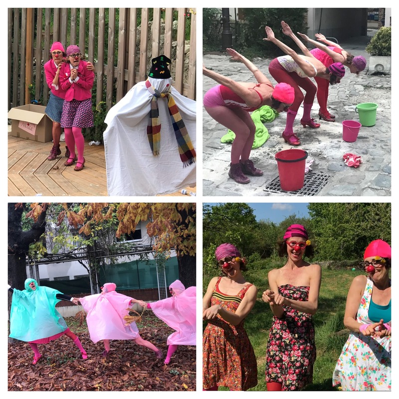 Spectacle familial de rue à partir de 5 ans / trio clownesque proposé par La Compagnie A Vol d'Oiseau (durée 55 minutes) / avec Louise Ferry, Violaine Robert, Fransoise Simon sous l’œil indispensable et complice de Rafael Bianciotto